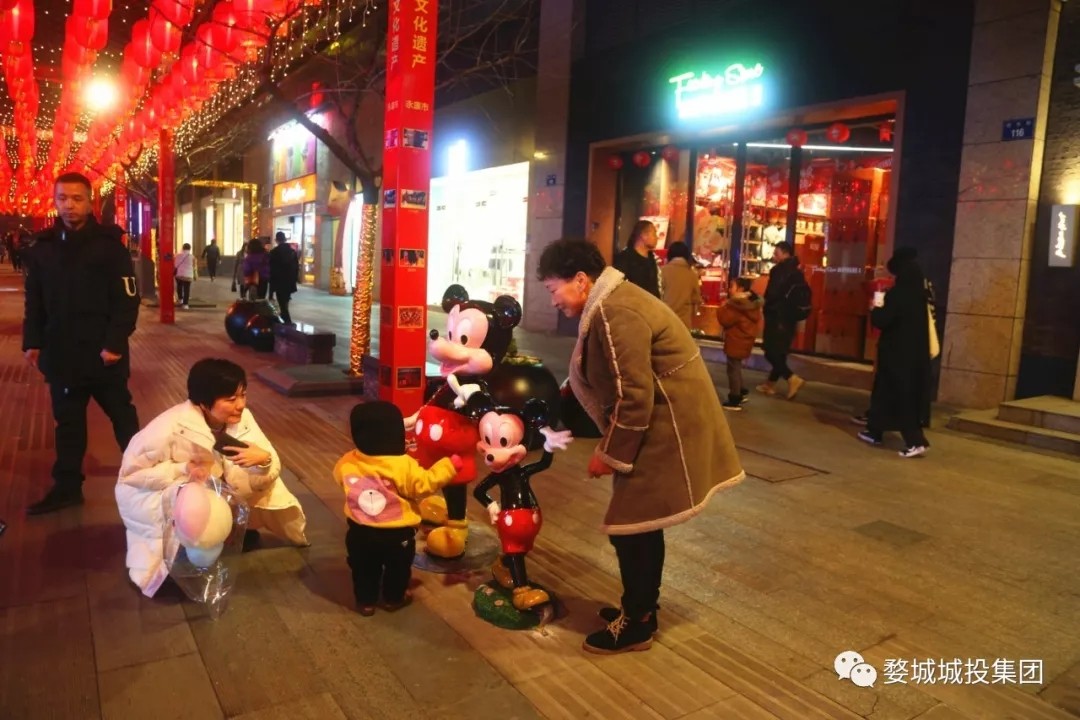 △雅堂街流光溢彩,通園路福瑞呈祥,新城區(qū)火樹銀花。